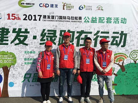 近日,海外教育学院4名志愿者参加了厦门国际马拉松志愿服务活动。
