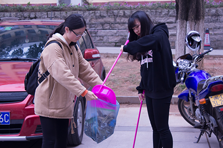 3月8日下午,财经学院组织全院学生积极参加“义务清扫校园”学雷锋活动。